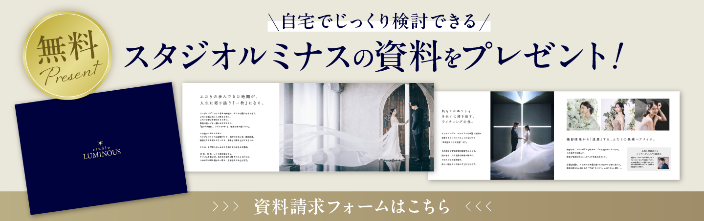 前を向いて歩いていくお二人に、新しい美しさを届けたい。どこかで目にしたようなものではなく、時代の風を生み出したい。ルミナスの美意識をかたちにした11種類のスタジオ。凛とした和装の美しさを引き立て、ドレスのデザインに輝きを与えるクリエイティブな空間を、スタジオ見学で確かめてください。
