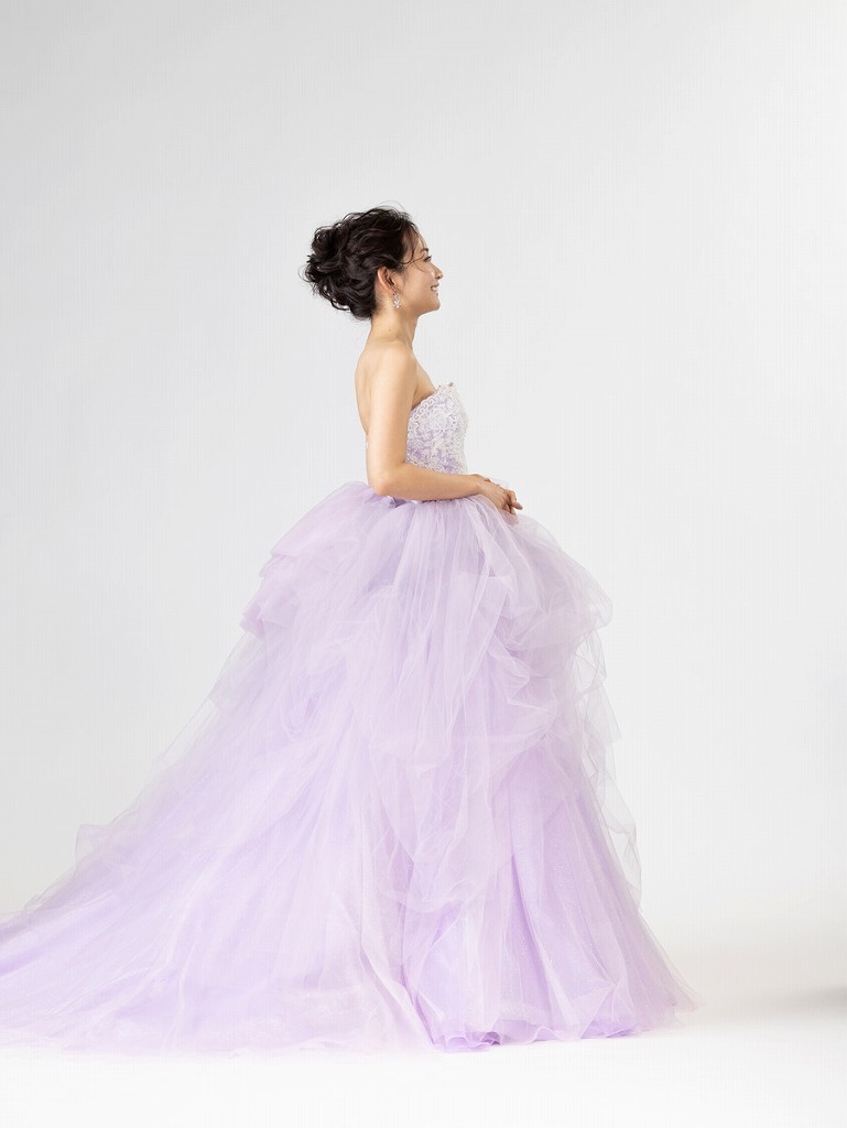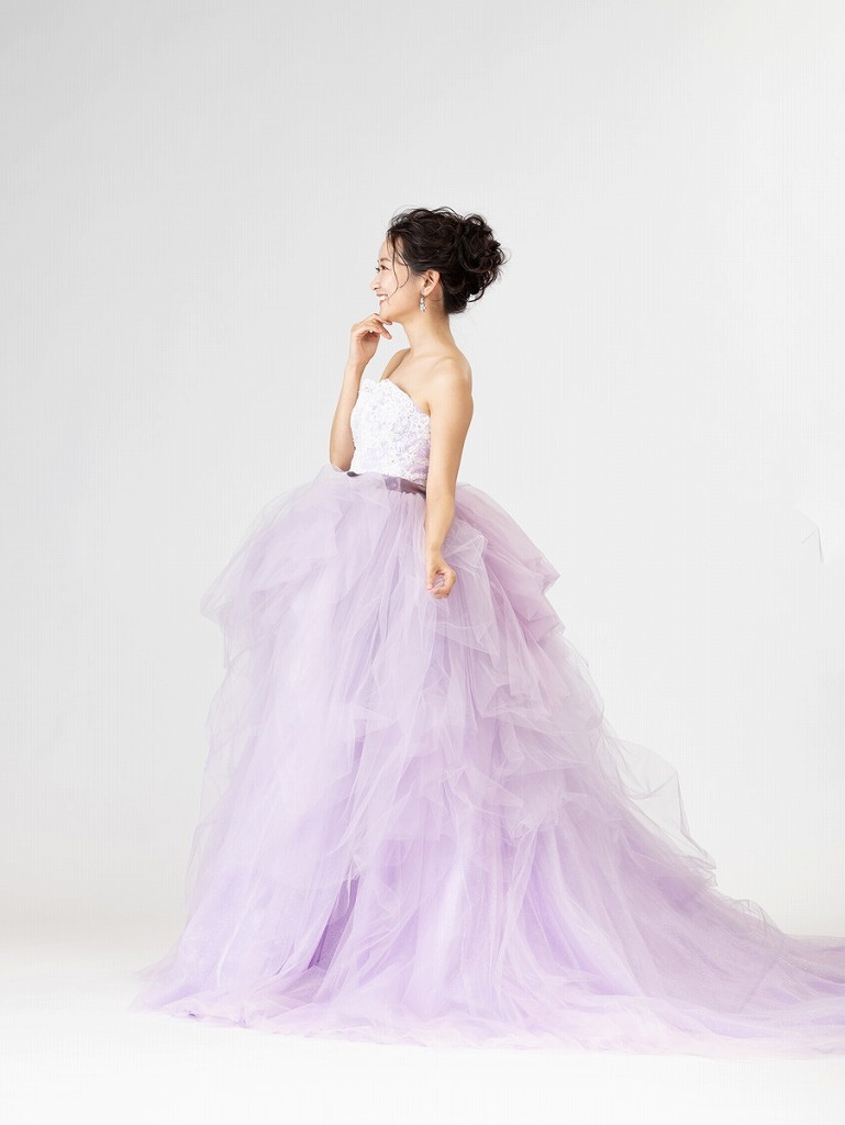 淡いパープルとふわっと広がるチュールはまさにプリンセスを想像させるような可愛らしいデザインです。