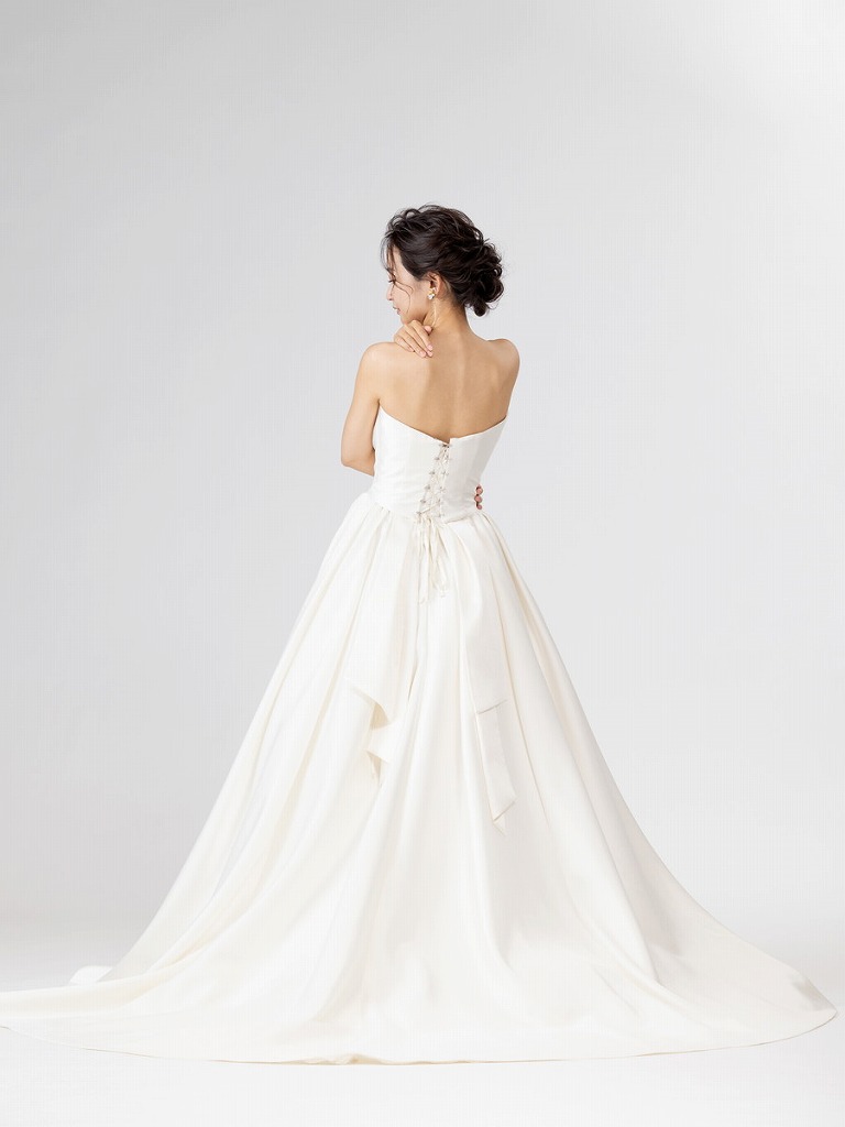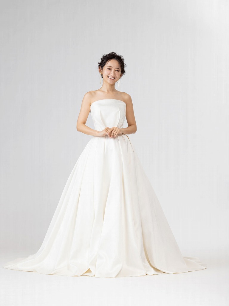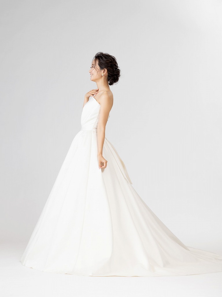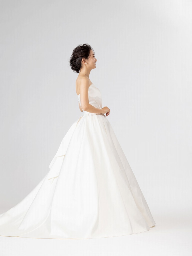 ウエストに集まるギャザーでよりスタイルをアップさせてくれるデザインのドレス。シンプルなデザインだからこそ髪型やアクセサリーで個性を出しやすい1着です。