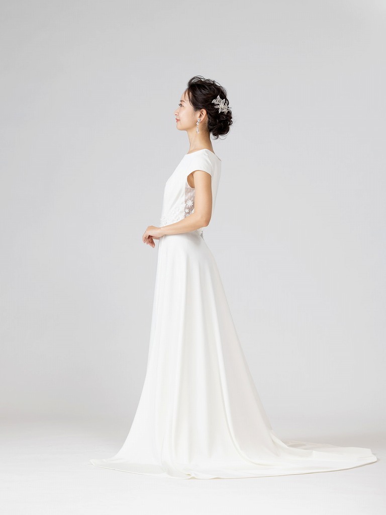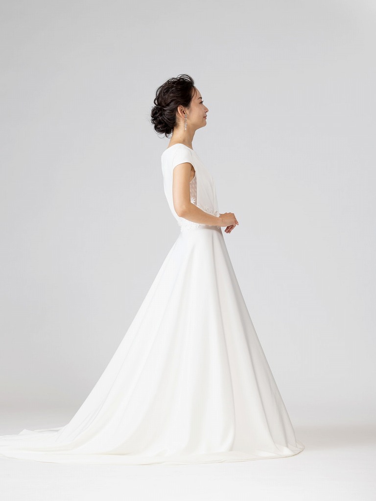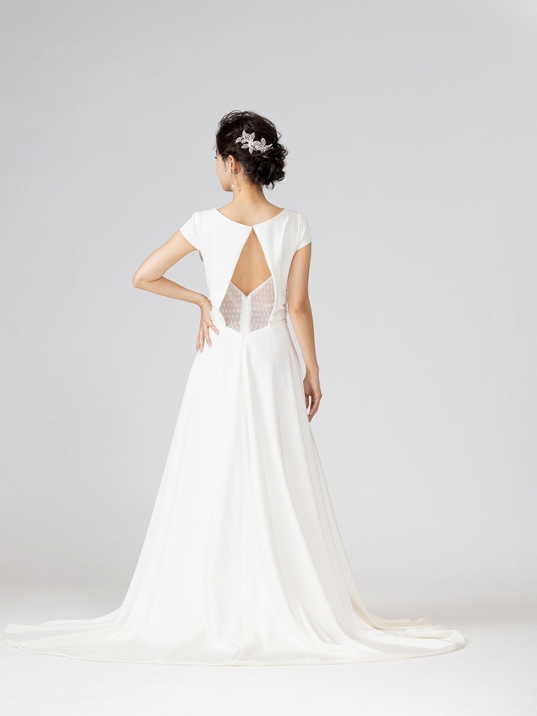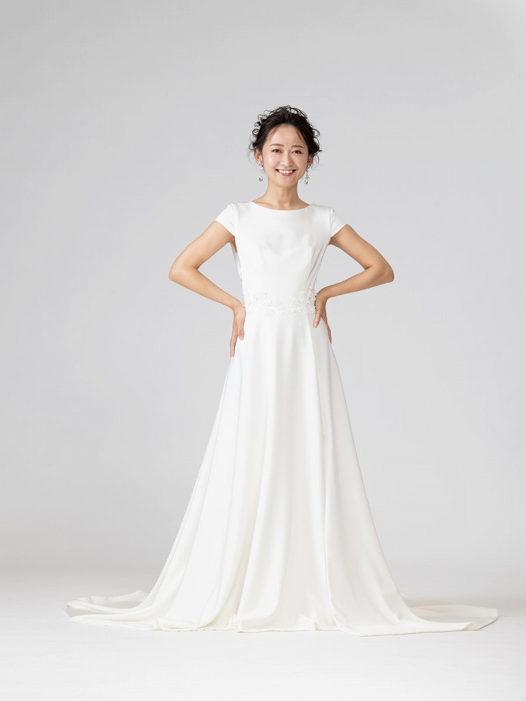 ショートスリーブでカジュアルな印象を出しつつもバックショットでエレガントな女性らしさを演出してくれるデザインのドレスです。