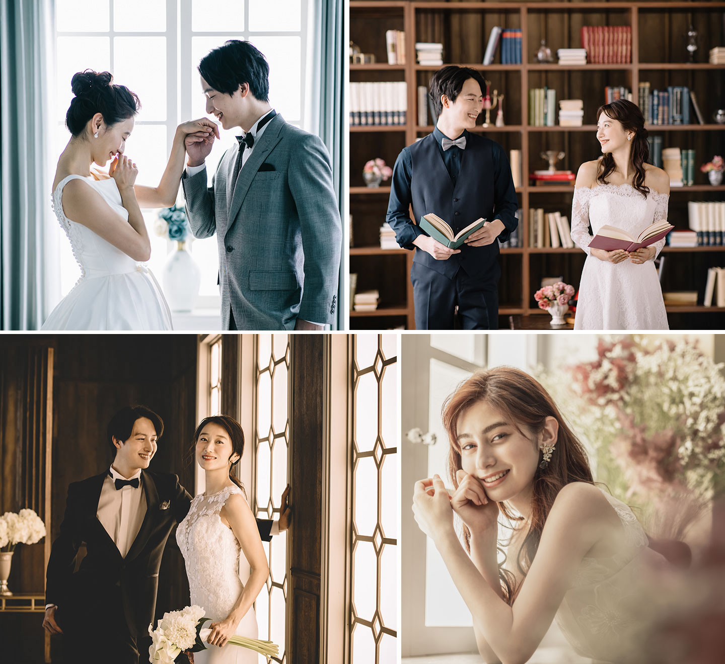 花嫁のいろんな側面を引き出せるよう、様々な国や時代を表現したシーンを、29種類と豊富にご用意しました。