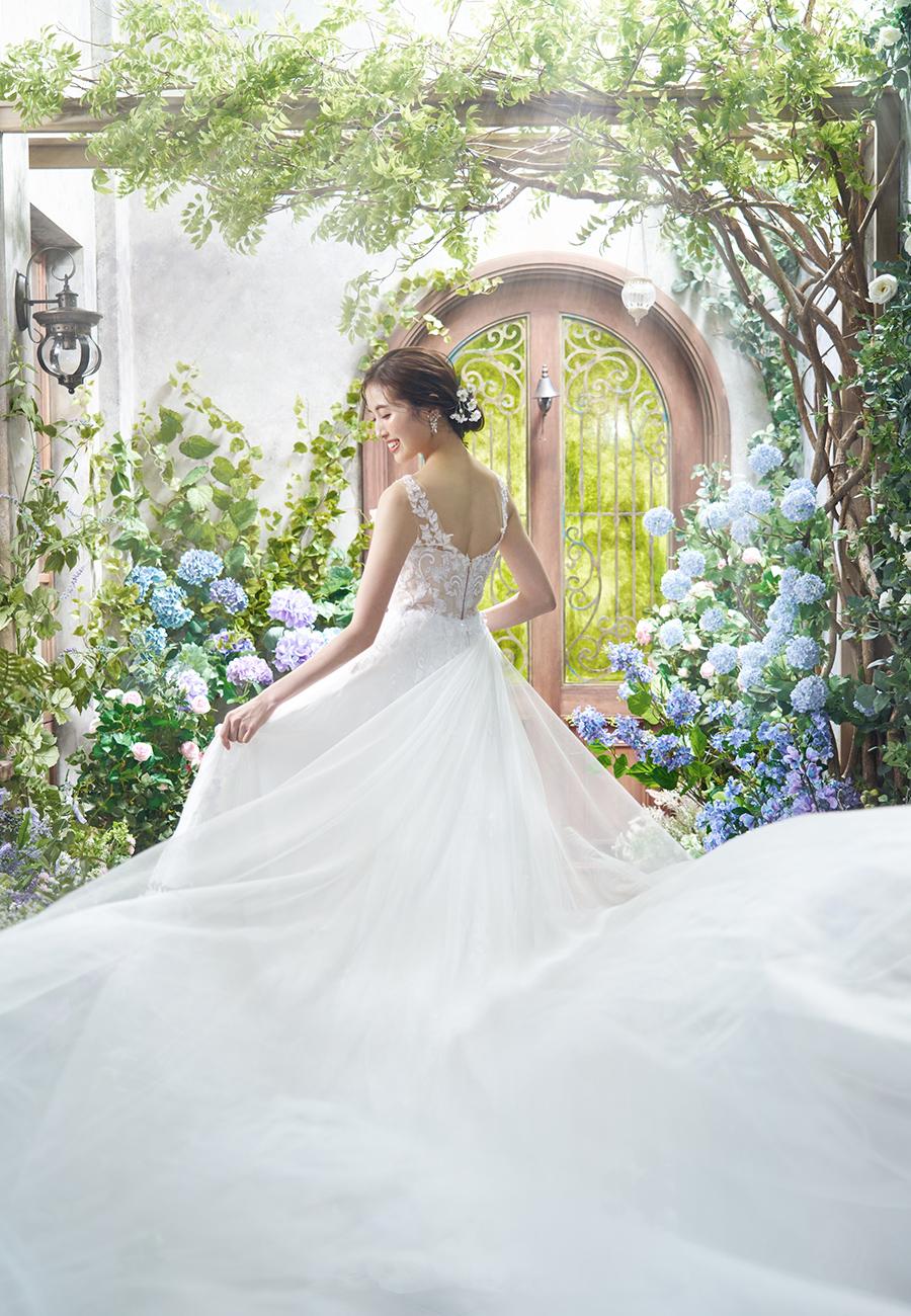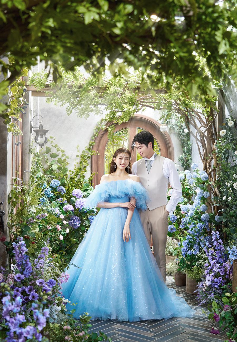 壁にはホワイトローズが咲き誇り、柔らかく差し込む木漏れ日とともにおふたりを美しく照らします。
