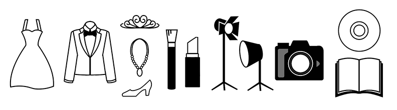 衣裳、ヘアセット&メイク、レタッチ、アルバムなどが含まれており、