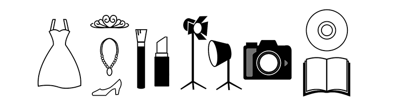 衣裳、ヘアセット&メイク、レタッチ、アルバムなどが含まれており、