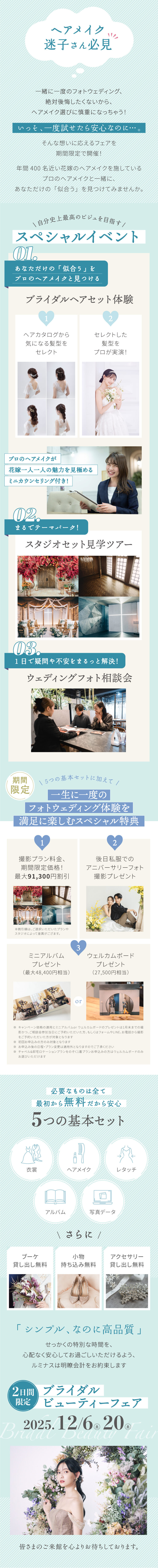 ※キャンペーン価格の適用とミニアルバムor ウェルカムボードのプレゼントは1月末までの撮影かつ、ご相談会参加当日にご予約いただいた方、もしくはフォームやLINE、お電話から撮影をご予約いただいた方が対象となります