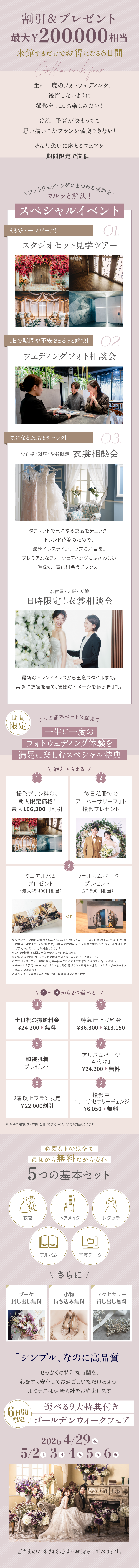 いつもよりお得な6日間!9大特典付き ゴールデンウィークフェア