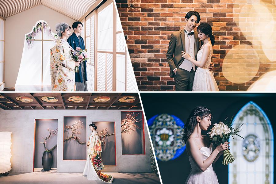 25種類の背景セットと多彩なタペストリーは、ウェディングフォトのためだけに作られたもの。随時開催のブライダルフェアでスタジオのクオリティをチェックして!