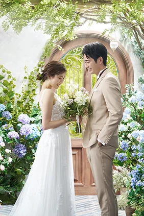モダンと自然が融合した上品なスタジオ。花々や草木、ストーンや光を取り入れた15種類のシーンが、妥協せずこだわりたいおふたりの、上質な婚礼を演出します。