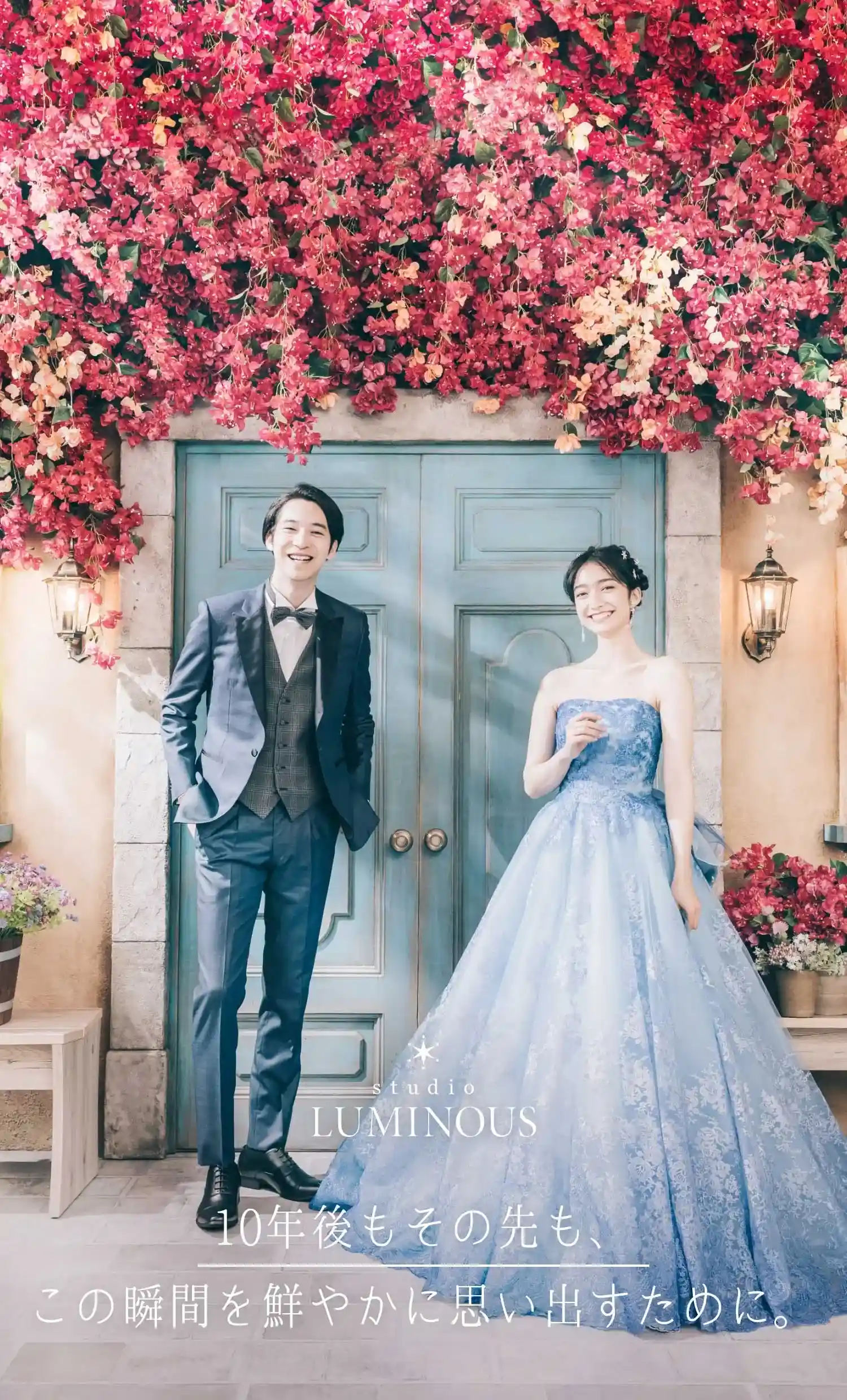 25種類のシーンは、全国のルミナスの人気シーンから作られた選りすぐり。様々な表情を見せるスタジオで花嫁体験を誰よりも楽しんで。