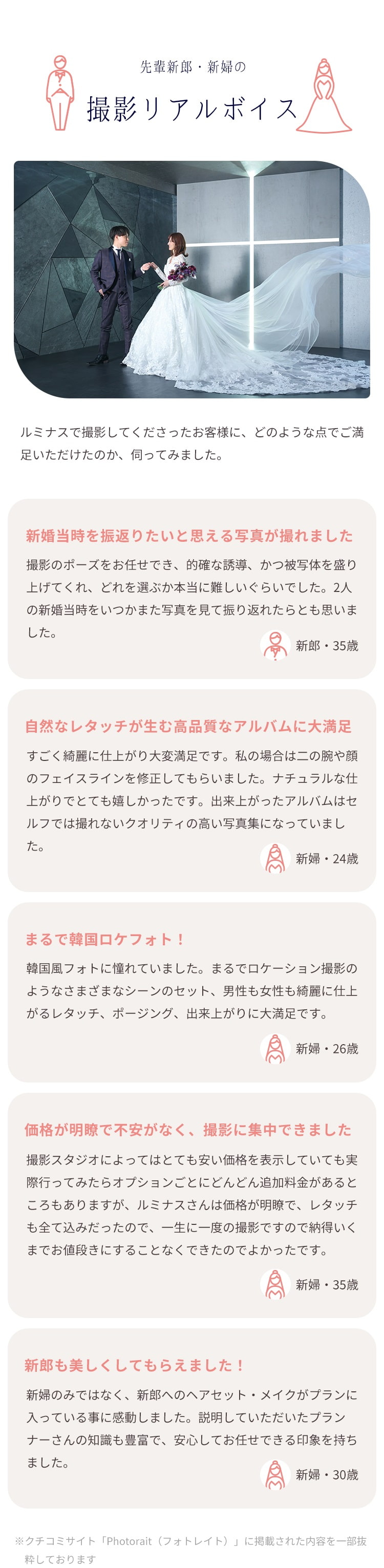 クチコミサイト「Photorait(フォトレイト)」に掲載された内容を一部抜粋しております
