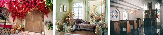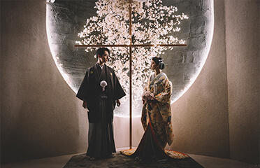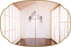 モダンと自然が融合した上品なスタジオ。花々や草木、ストーンや光を取り入れた15種類のシーンが、妥協せずこだわりたいおふたりの、上質な婚礼を演出します。