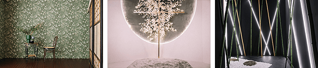大正浪漫邸宅や茶室をはじめ、桜や竹など日本らしさを感じる伝統的な情景を現代風に解釈した、唯一無二のクリエイティブな空間。