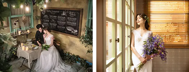 25種類のシーンは、全国のルミナスの人気シーンから作られた選りすぐり。様々な表情を見せるスタジオで花嫁体験を誰よりも楽しんで。