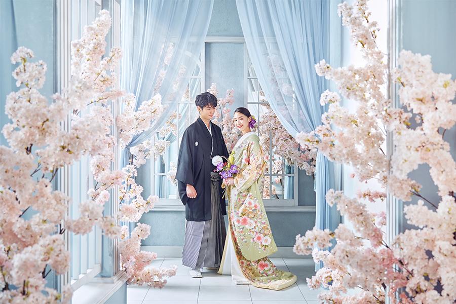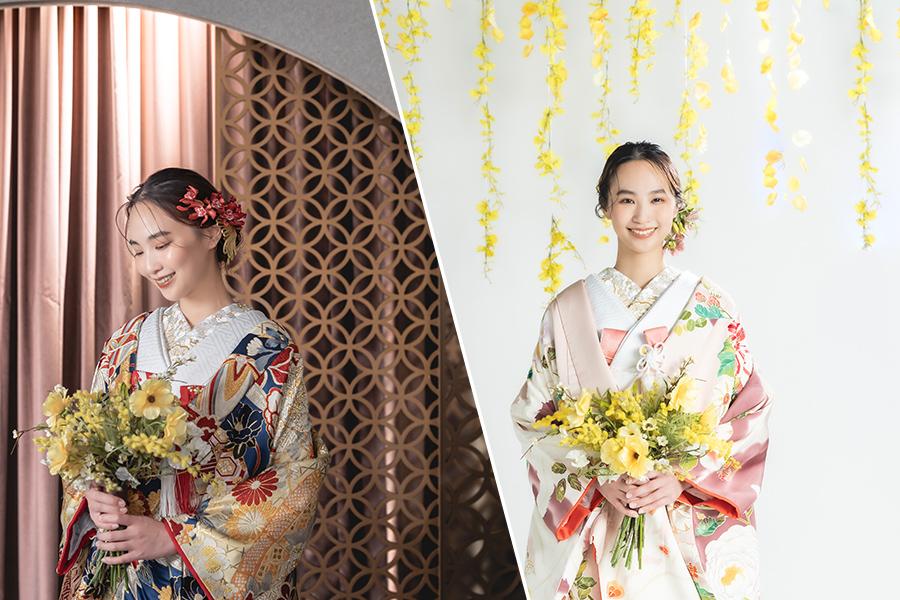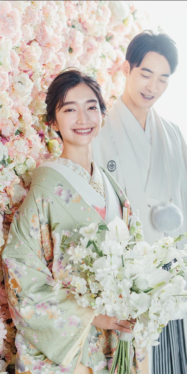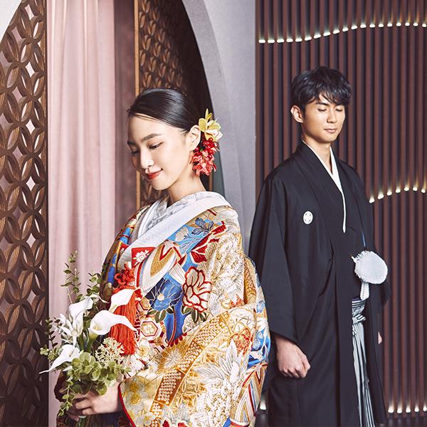 色打掛または白無垢と新郎の羽織袴が含まれたスタンダードプラン。